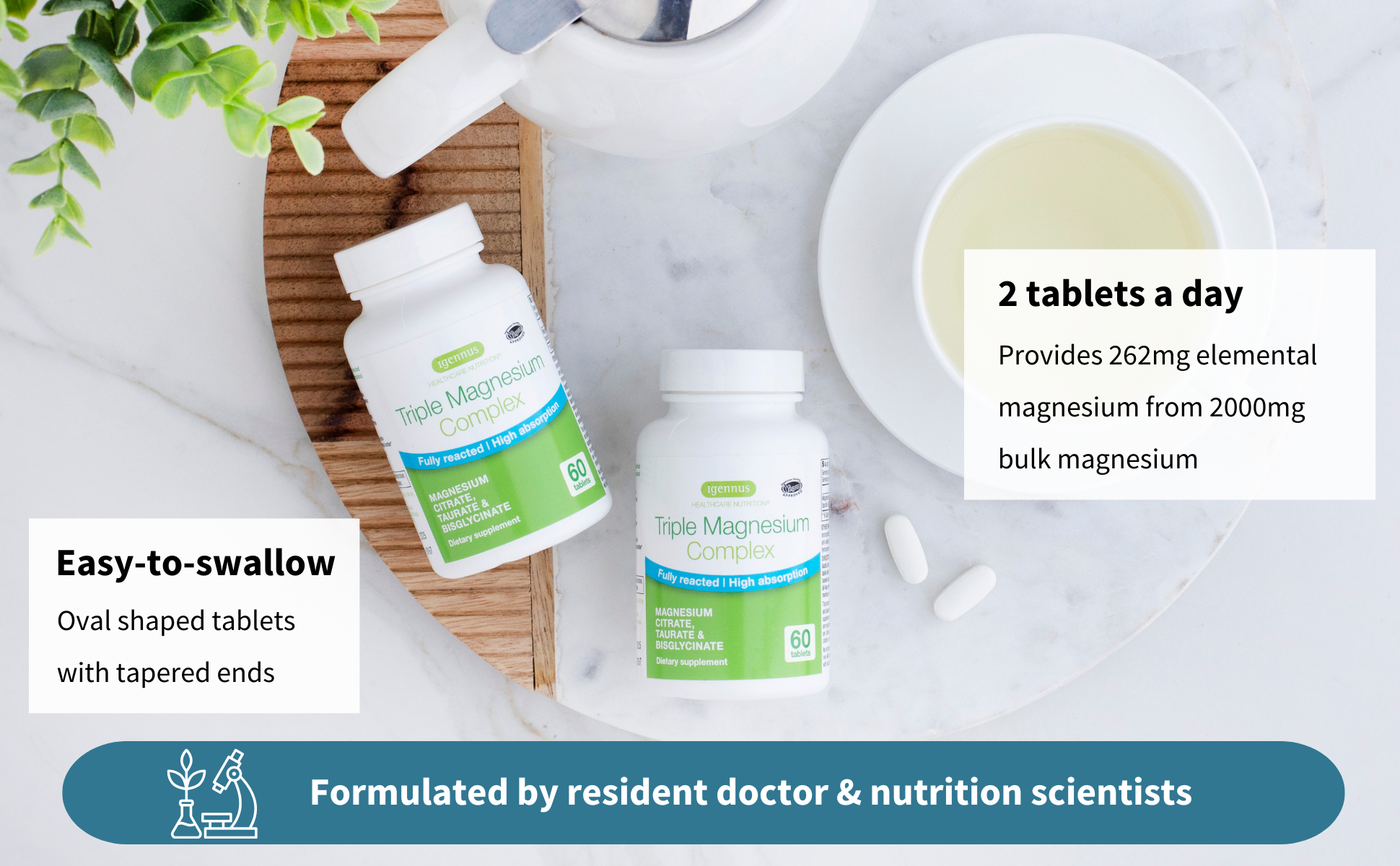 Triple Magnesium Complex is an advanced blend of high absorption magnesium citrate, taurate and bisglycinate chelate, formulated by expert nutrition scientists and our resident doctor, to optimise magnesium absorption for intensive support.
