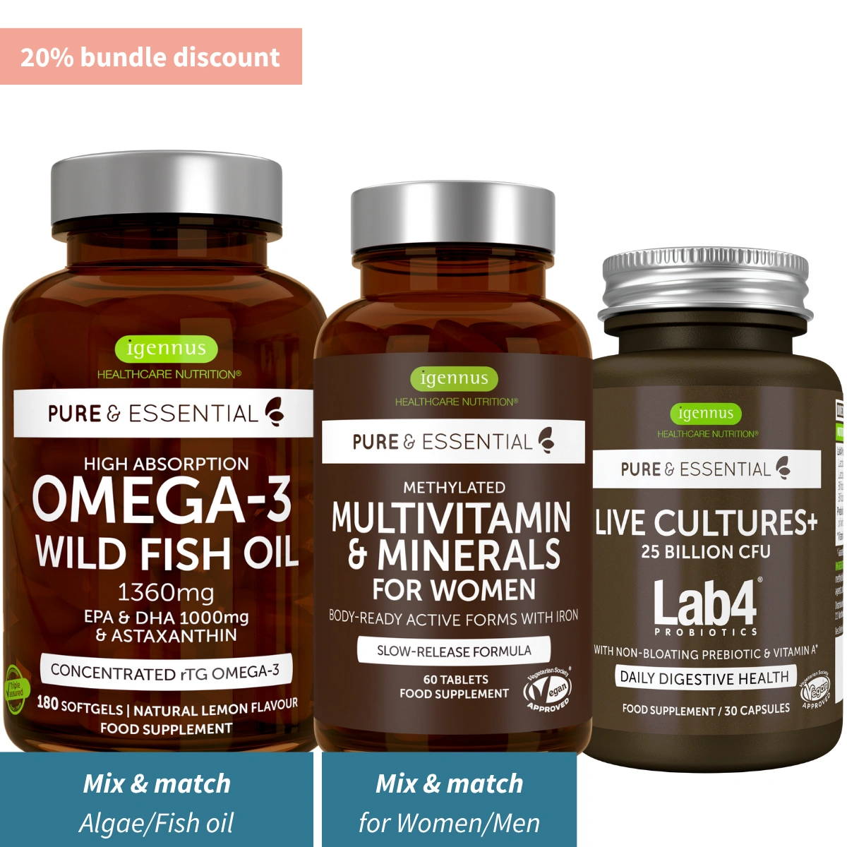 With a choice of vegetarian or vegan vitamin D3, this bundle delivers essential nutrients to boost immune health