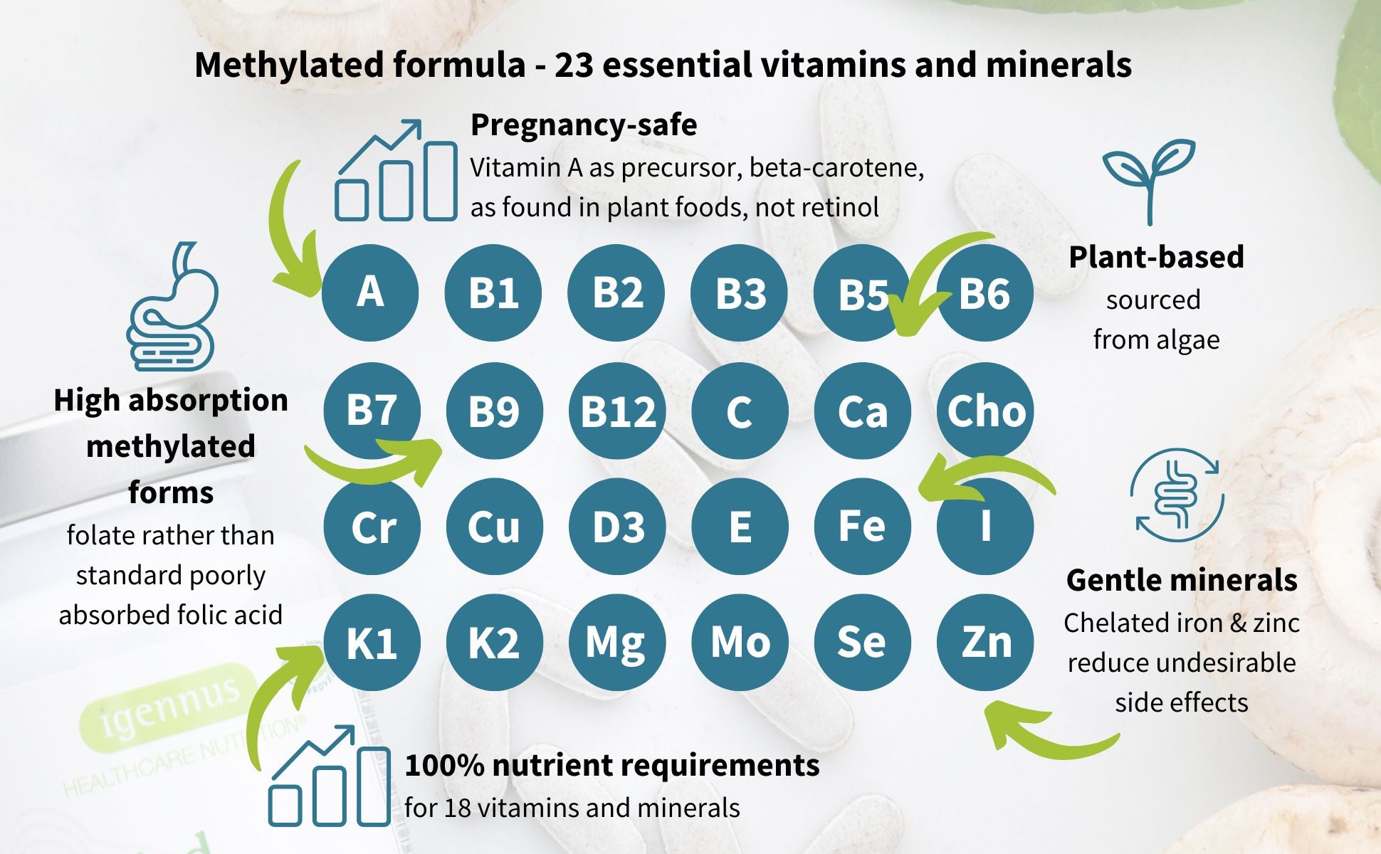 Women during pregnancy and three months postnatal: take 2 tablets daily with food.